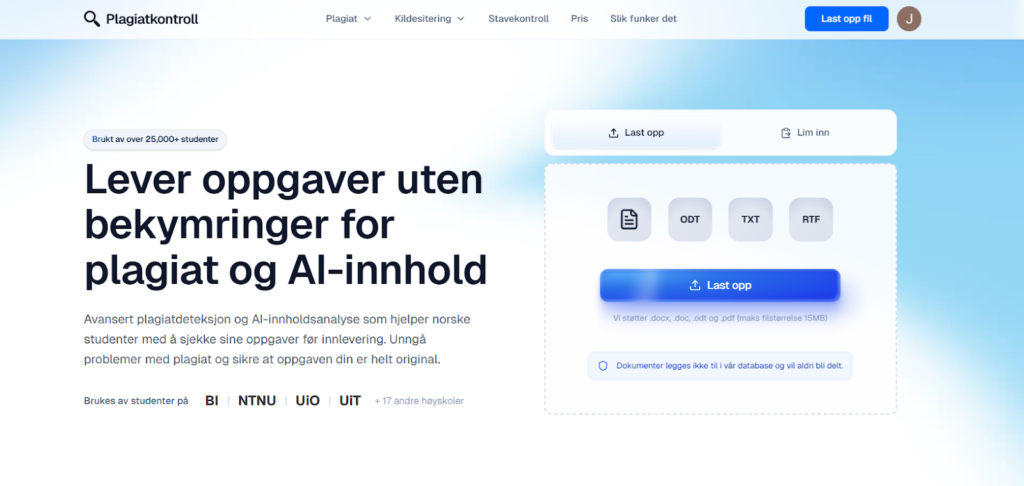 Anbefaling: Sjekk oppgaven din hos Plagiatkontroll.no – her får du kombinasjon av plagiatkontroll og norsk-fokusert støtte, inkludert AI-deteksjon som mange institusjoner også forholder seg til i 2026.
